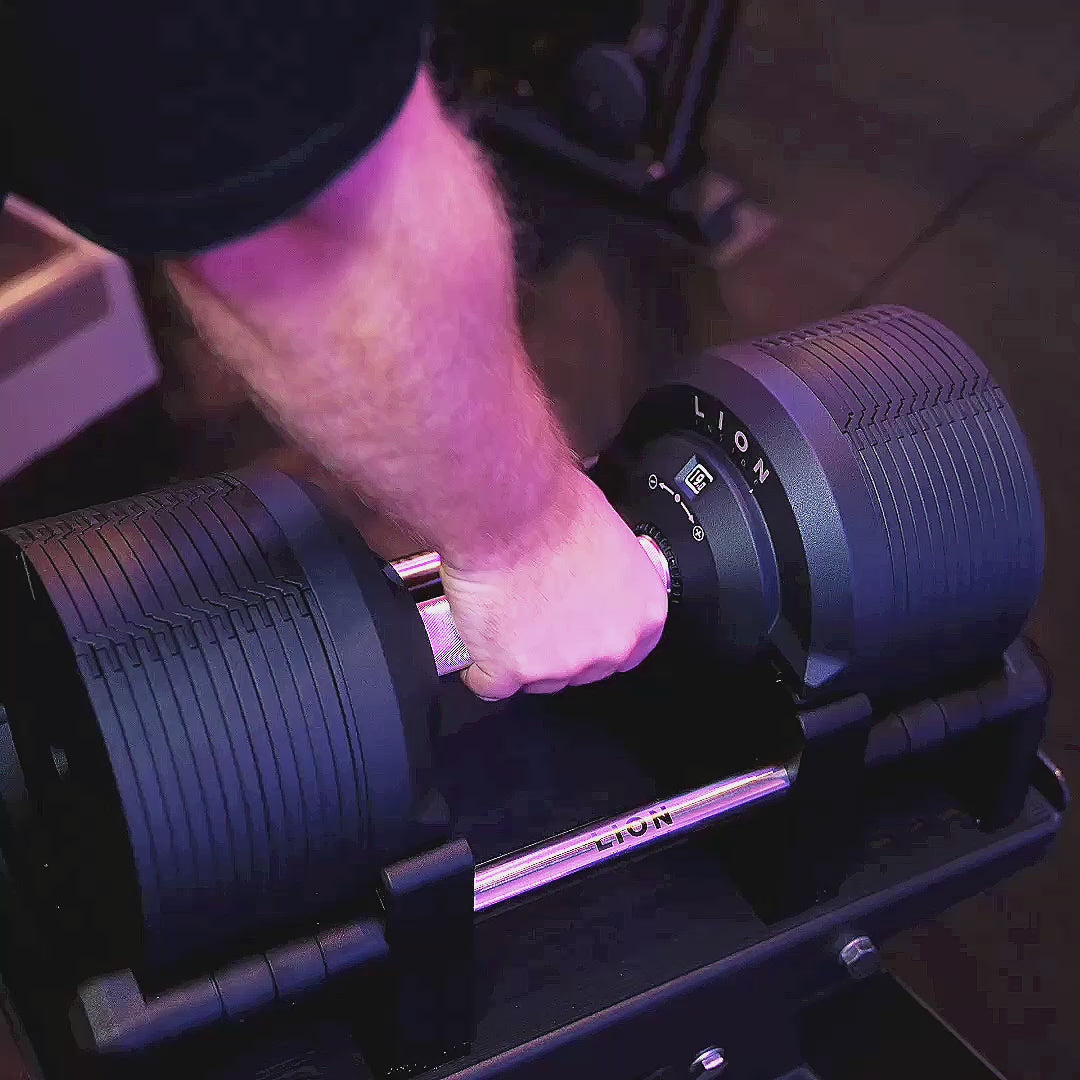 Ervaar krachttraining op topniveau met de LION® TitanSilver™ Verstelbare Dumbbells. Vervaardigd uit hoogwaardig staal en ontworpen met precisie voor maximale prestaties, stijl en efficiëntie in elke beweging.